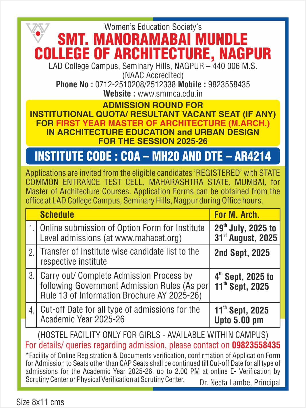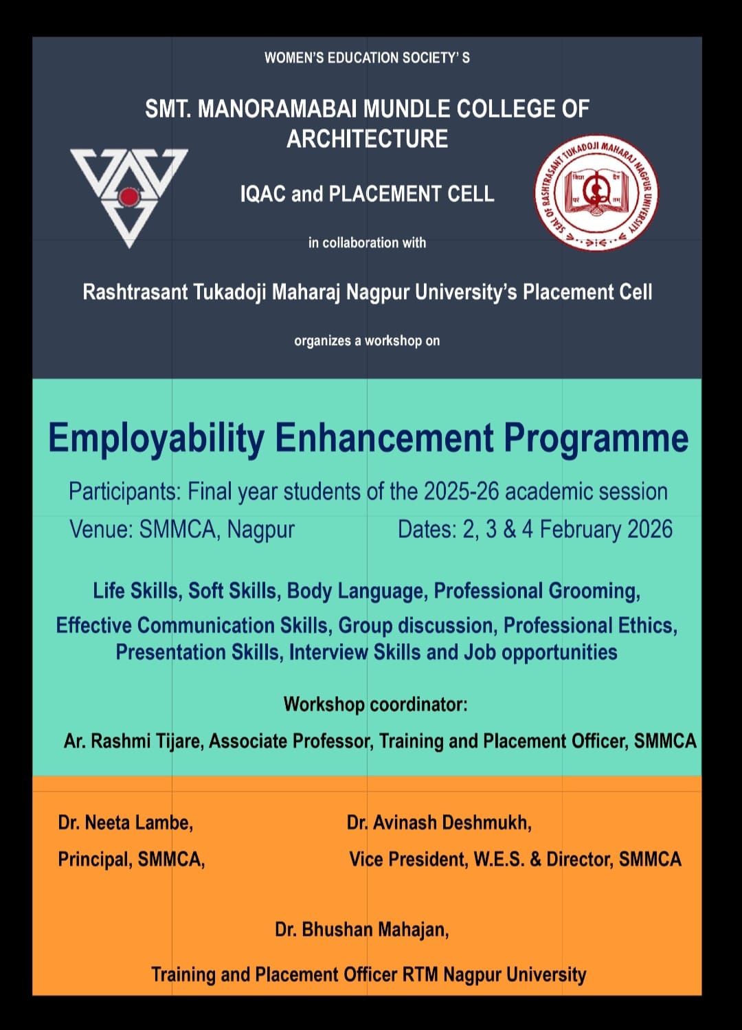 SMT. MANORAMABAI MUNDLE COLLEGE OF ARCHITECTURE LAD COLLEGE CAMPUS, SEMINARY HILLS, NAGPUR 440006 (M.S.) INDIA