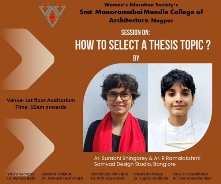 Session on “How to select a Thesis Topic” – was organized by Thesis Incharge Dr. Sujata Godbole and coordinated by Ar. Sneha Bodhankar on 26th Sept. 2024 at 10;00am in first floor Auditorium for 9th semester students.
