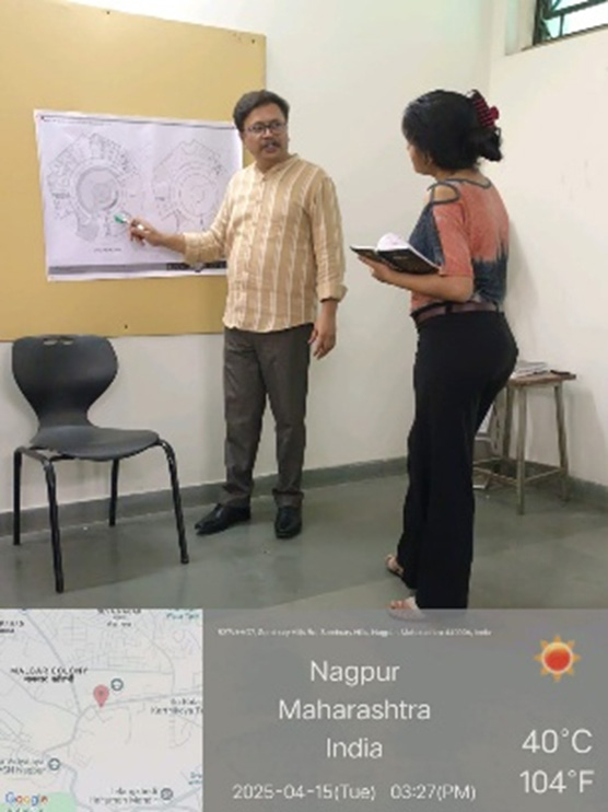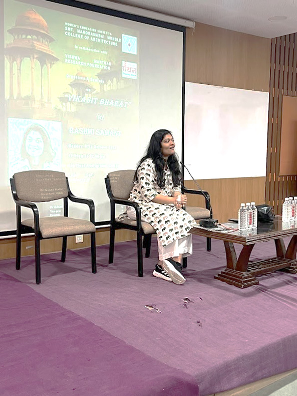 The program started on objective of the session and then introduction of guest Ar. Surbhi and Ar Ramalaxmi by Sujata Godbole. The R.Ramalakshmi and Surabhi Shingarey is an architectural practice co-founders of Samvad design studio. In August 2024, the firm was awarded ‘Young Architect of the Year 2024’ by WADE ASIA. In January 2024, the duo’s works were identified and honoured amongst 75 women Architects for contributing to 75 years of architecture in India at IAADB23, with their works exhibited at the Redfort, Delhi. The architectural practice is focused on interpreting context responsiveness to create contemporary built environments. With attention to tectonic inventiveness, structural and material explorations, the studio has designed a range of critically acclaimed and sensitive projects across India. The projects are situated across Karnataka, Tamil Nadu, Maharashtra and Kerala and exploring a range of technologies from rammed earth, compressed stabilized earth blocks, stone masonry, exposed concrete, load bearing and framed structures. With over 14 years of practical experience, the firm is adept at designing across scales and typologies ranging from convention centres, institutions, schools, cultural centre, community centre, housing to residential projects.