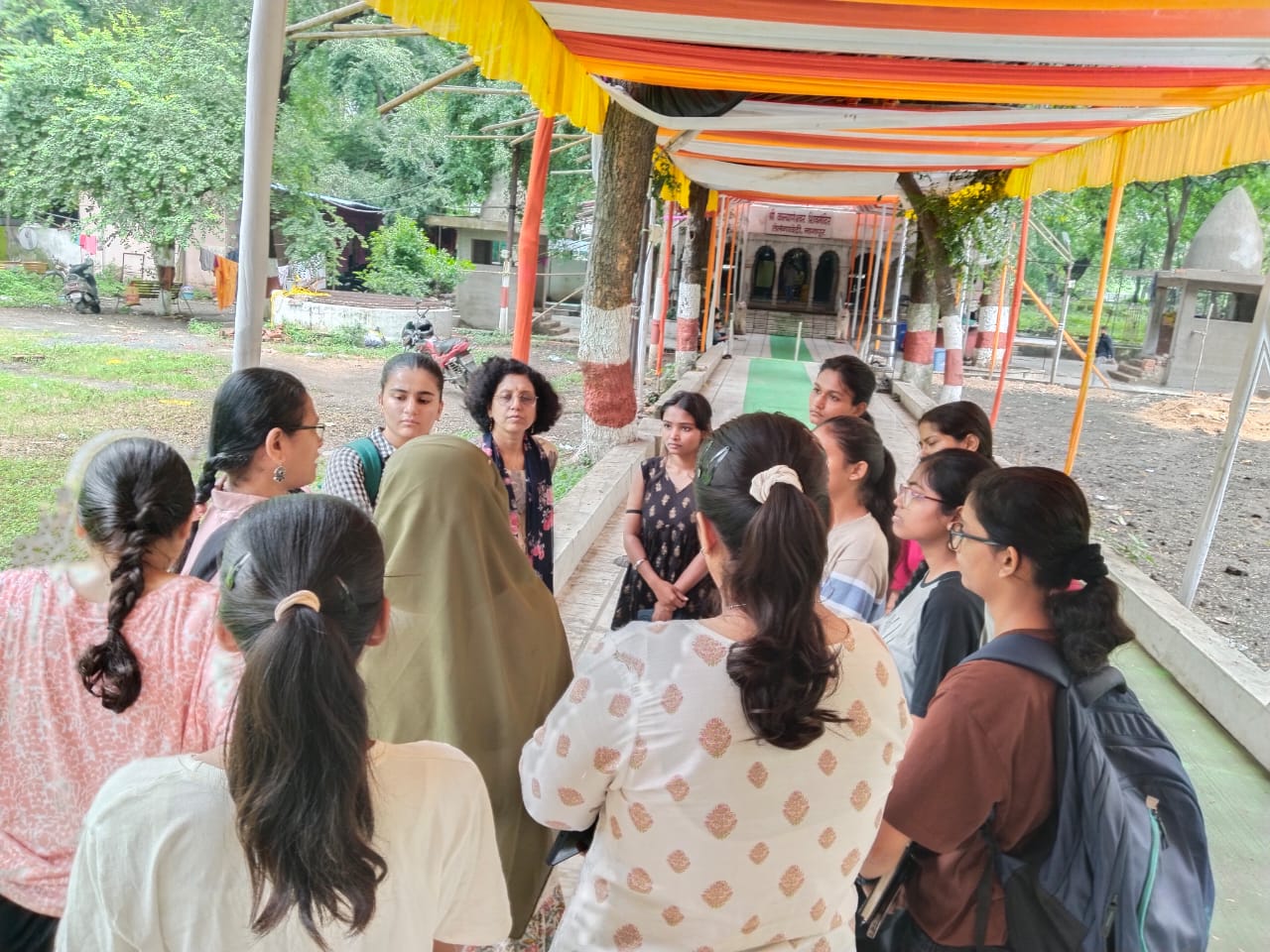 | 13th Oct | Three pendals were visited, where work at various stages of dismantling was in progress to understand the foundation, structural integrity of the system against various live and dead loads, and the structural and covering material of temporary structures. Teacher In-charge: Ar. Poornima Deshpande, DR. Sujata Godbole, Ar. Rashmi Tijare, Ar. Namrata Gaurkhede. |