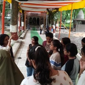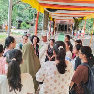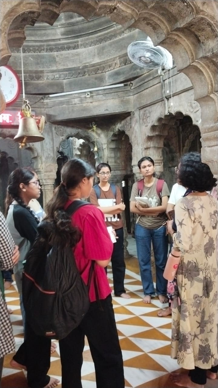 Also, students observed the ongoing conservation work undertaken by ASI, which involved structural stabilization of roof and roofing materials, restoration of deteriorated terracotta roofing tiles, and careful cleaning of stone surfaces. Techniques such as lime plastering, stone replacement, were explained, providing students with a real-world understanding of heritage preservation.
