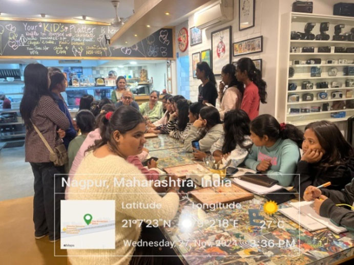 The site visit was organised on 27th November 2024 for the students of 1st sem B.Arch. The objective of the site visit was to understand the Spaces, activities and furniture layout. Ar. Mukul Kulkarni was the resource person who is a Breakfast Story Owner and practicing Architect in Nagpur city. Students experienced and documented The Breakfast Story Cafe for understanding the Theme cafe as a Design Project.